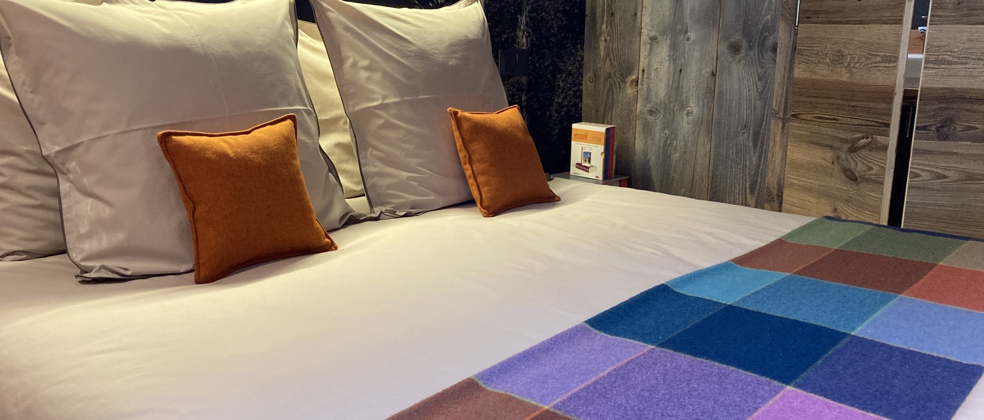 La maison suit le bord de la route. Ou peut-être est-ce l'inverse?!. De ce rapprochement intime est née "la Chambre du Coin"...du coin absent, généreusement légué à la voirie. Cette chambre aux allures champêtres entraîne ses hôtes dans l'esprit vagabond d'une cabane avec ses murs en talvanes anciennes, en laines et peaux tendues. Habitée par quelques animaux de basse-cour, cette chambre fut surnommée pendant ses travaux de rénovation "la chambre des poules" par les artisans. Vous découvrirez vite pourquoi ;o) !