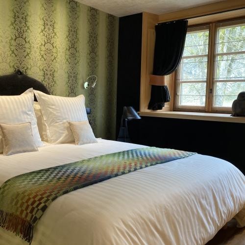 La "Chambre Neuve", dernière pièce à avoir été rénovée par nos arrières grands parents Cécile et Abel, était autrefois un atelier d'ébénisterie. Des couleurs et matières de la chambre neuve émane une atmosphère douce et apaisante. Hommage à nos grand'mères Odette et Hélène, cette chambre est aujourd'hui aménagée pour accueillir également les personnes à mobilité réduite.