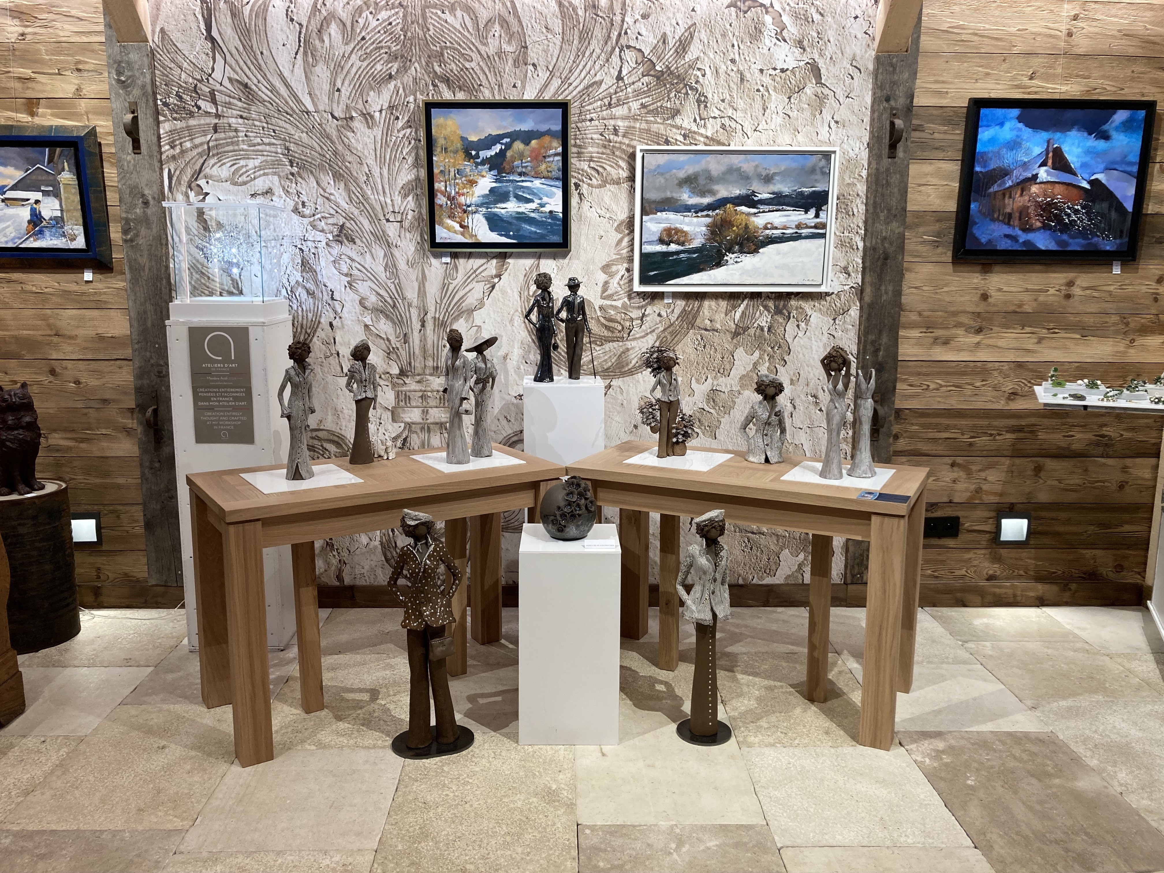• Plusieurs consoles et colonnes pour mise en scène de produits